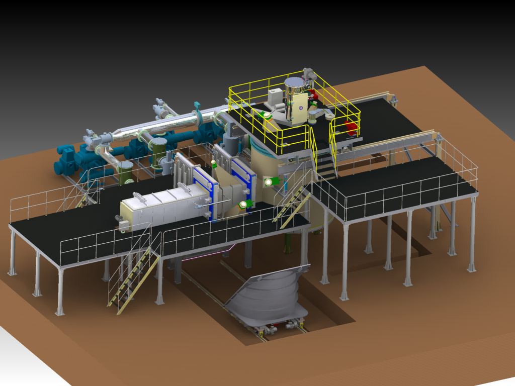 蘇州振湖針對(duì)真空澆鑄業(yè)主推出的采用T型澆鑄系統(tǒng)的VIM爐: