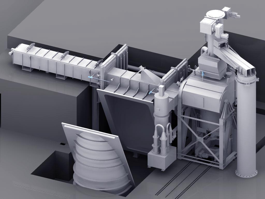 爐體構(gòu)成:具備主熔煉、旋轉(zhuǎn)錠模室、主加料室、電磁合金加料或側(cè)加料室、中間溜槽室。